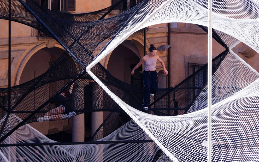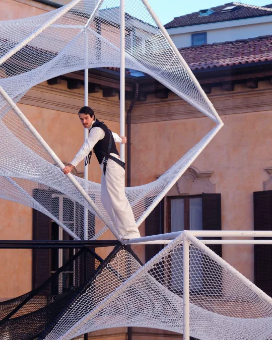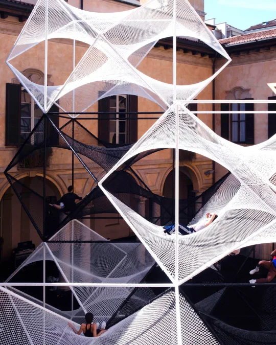 Presented from 16–21 April 2024 as part of Porsche’s The Art of Dreams, Lines of Flight functioned as a large-scale experimental public furniture piece. Visitors were invited to climb, recline, and explore the structure, becoming an active part of the installation itself and experiencing the courtyard from unexpected perspectives.