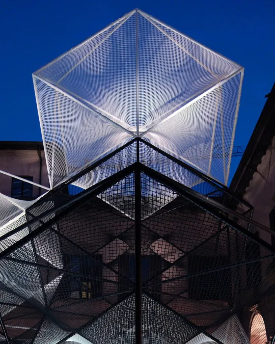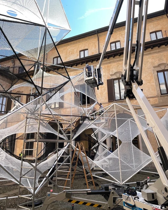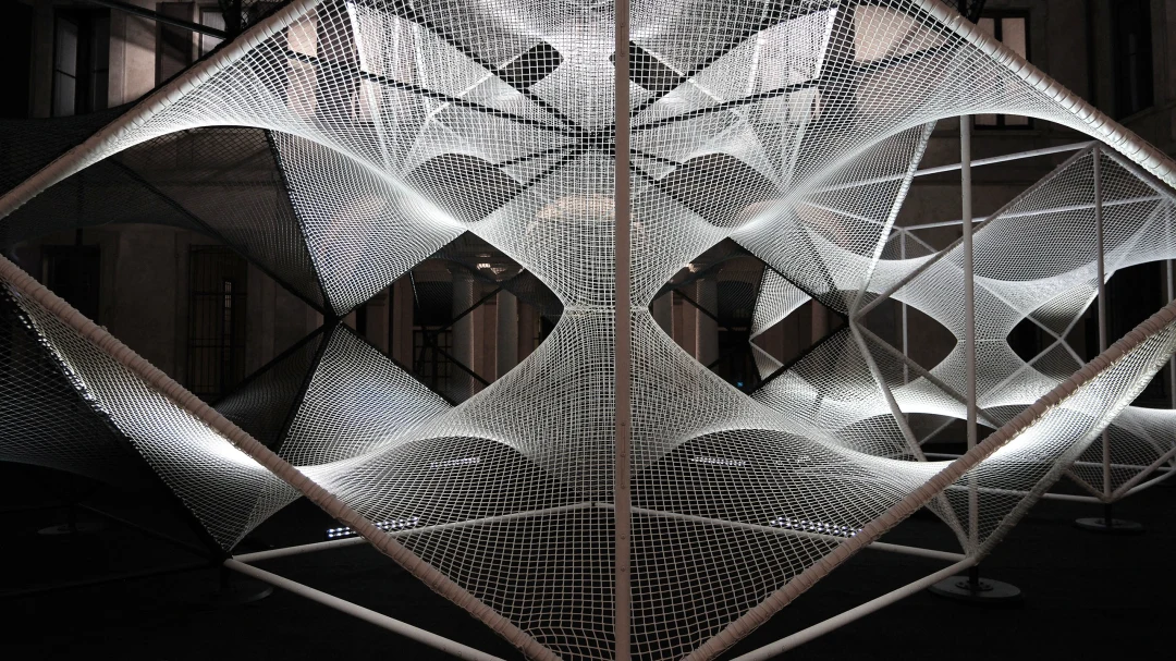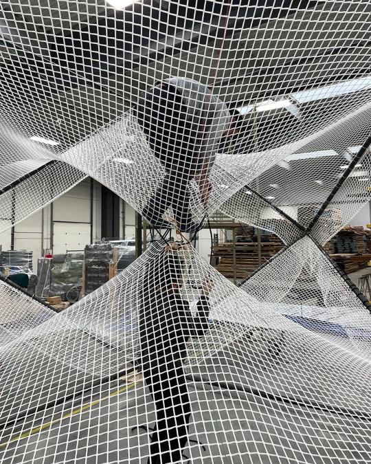 Conceived as a spatial exploration of geometry, symmetry, rhythm, and repetition, the installation invited visitors into a floating landscape of nets and metal cells - part sculpture, part architecture, part experience. Realising such a delicate yet monumental vision required advanced engineering, experimental prototyping, and precise craftsmanship, all executed in-house.
